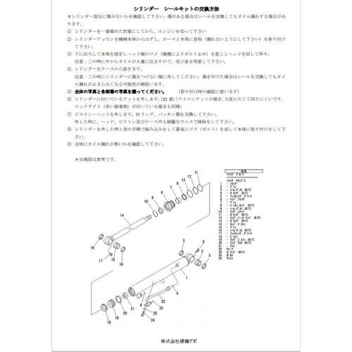 建設機械の油圧シリンダーのオイル漏れを修理する、交換用シールキットです。