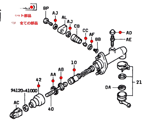 ブレーキマスターシリンダーのオイル漏れを修理する、交換用部品です。